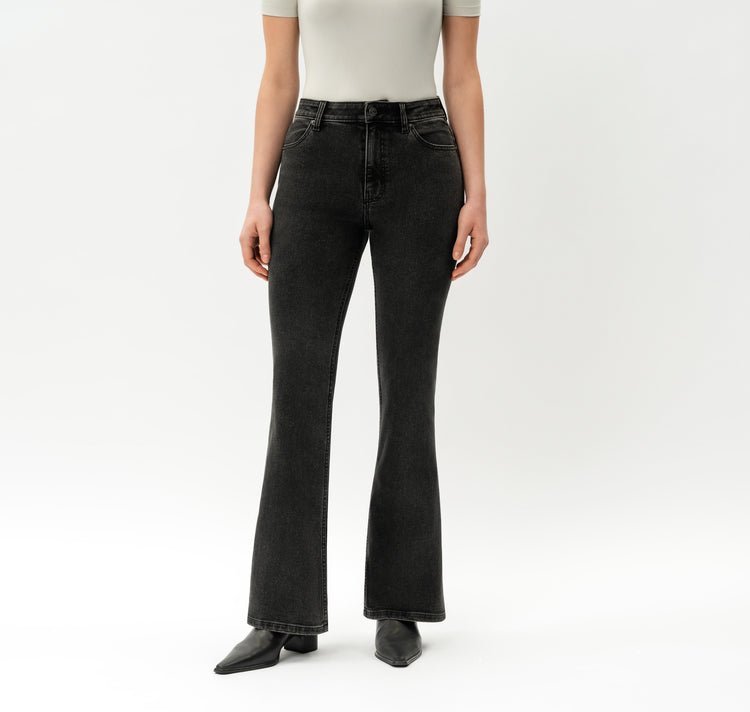 Experience the classic look of denim with the comfort of incredible stretch. Our high-waisted, bootcut jeans are crafted from a proprietary denim blend that’s both very stretchy and thick, delivering the feel of traditional denim with added flexibility. Designed to elongate the leg and subtly flare below the knee, these jeans are a versatile essential in any capsule wardrobe.