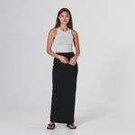 This full-length maxi skirt boasts a sophisticated aesthetic with the comforts of activewear. Its high-waisted, pencil silhouette and subtle middle back slit promise ease of movement while making a style statement.