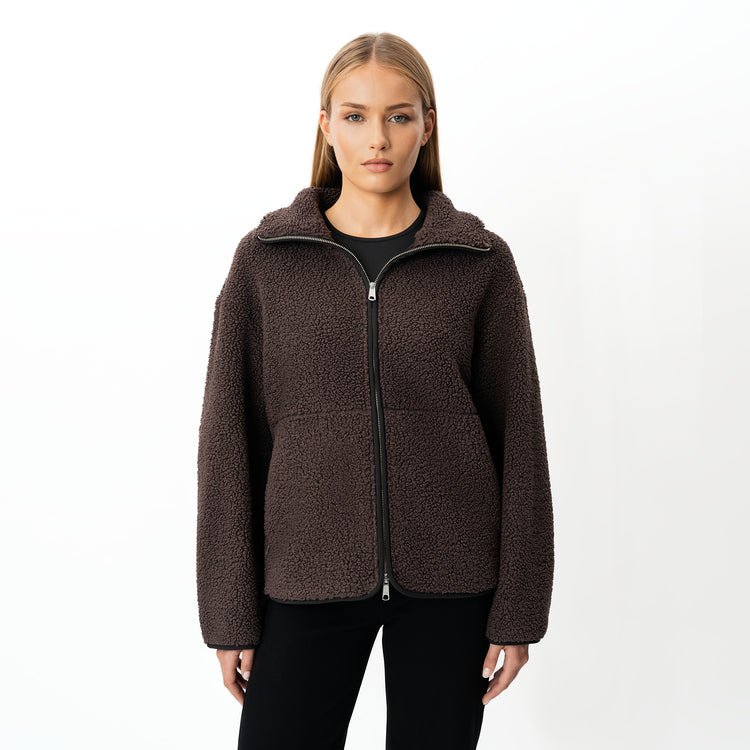 Experience the luxury of comfort with Ninepine's versatile fleece jacket that combines elegance with practicality. This cold weather staple has thoughtful details such as hidden pockets, 2-way zipper and soft fleeced lining that makes it a perfect addition to your capsule wardrobe. Dress up or down, the relaxed fit and dropped shoulder design provide a comfortable, yet sophisticated look.