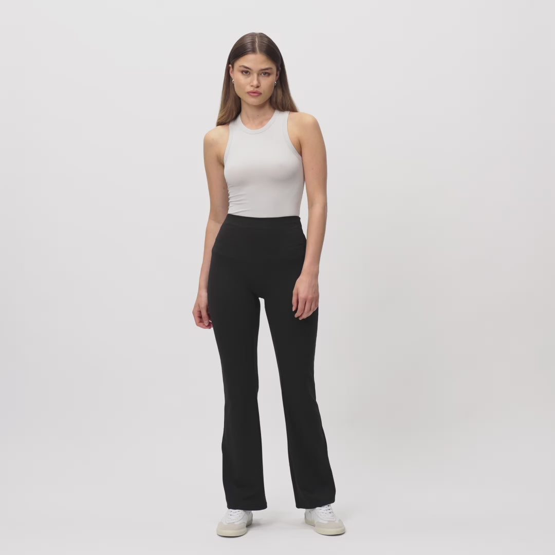 Experience the ultimate blend of comfort, functionality and style. Crafted from post-consumer waste, these high-waist leggings offer peach-like softness and a perfect fit. Featuring a flared fit, no front seam, and versatility for workouts, yoga, pilates, lounging, and daily use, they combine convenience, comfort, and sustainability in one essential piece.