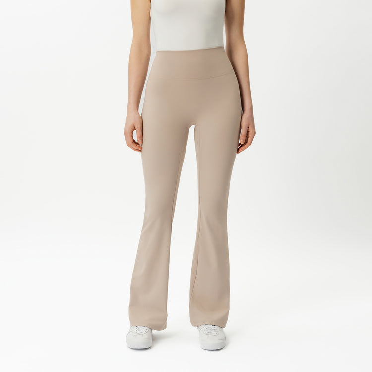Experience the ultimate blend of comfort, functionality and style. Crafted from post-consumer waste, these high-waist leggings offer peach-like softness and a perfect fit. Featuring a flared fit, no front seam, and versatility for workouts, yoga, pilates, lounging, and daily use, they combine convenience, comfort, and sustainability in one essential piece.