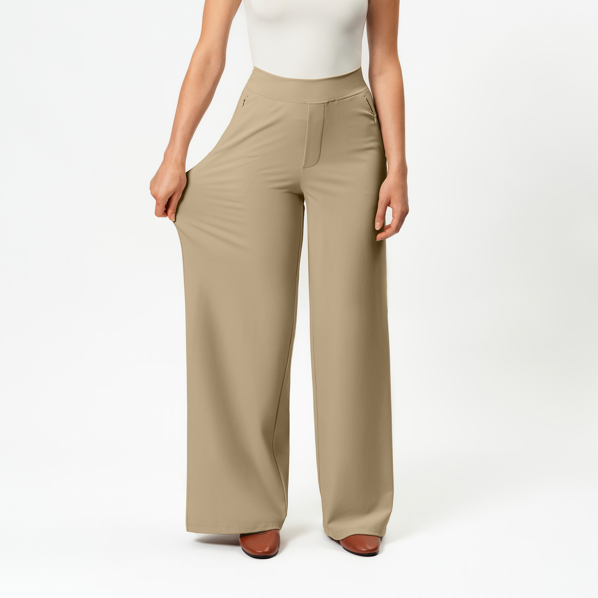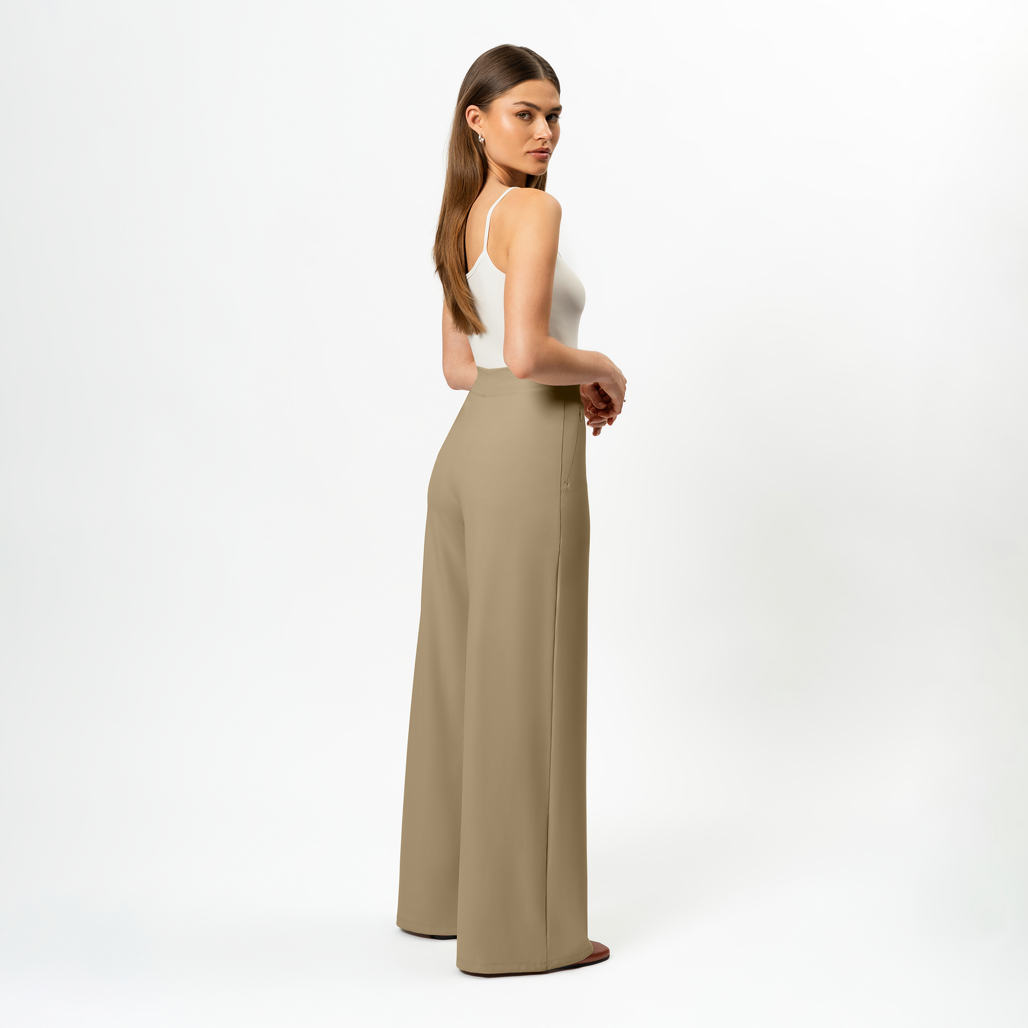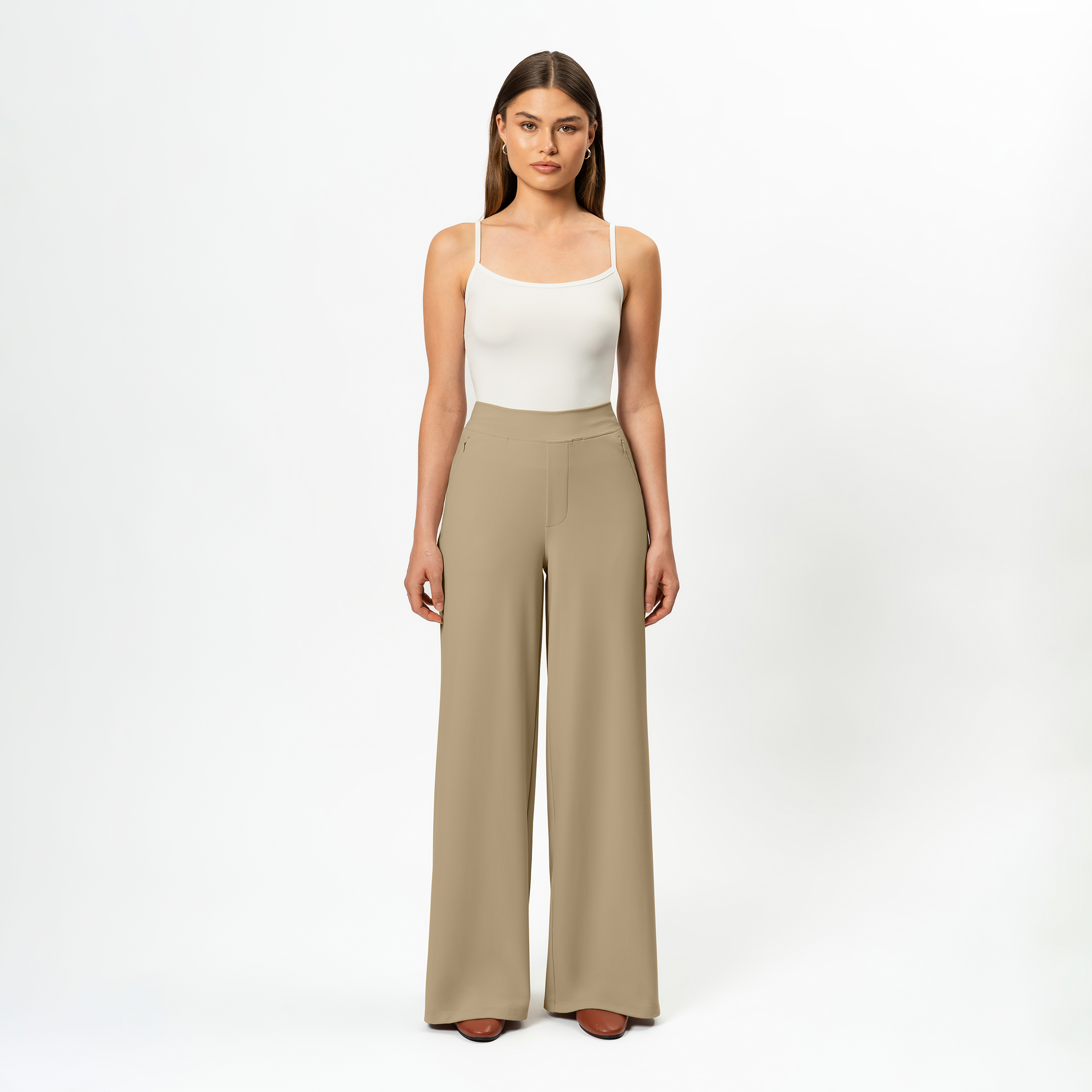 Introducing the Asana Wide Pants – the ultimate "everything" pants. Designed with a looser fit at the thighs and a wider leg, these pants feature discreet zip pockets, a high centerfold waist, and are crafted from soft brushed activewear knit. Perfect for casual outings, work, dance, travel, and lounging, they are your go-to for comfort and style every day.