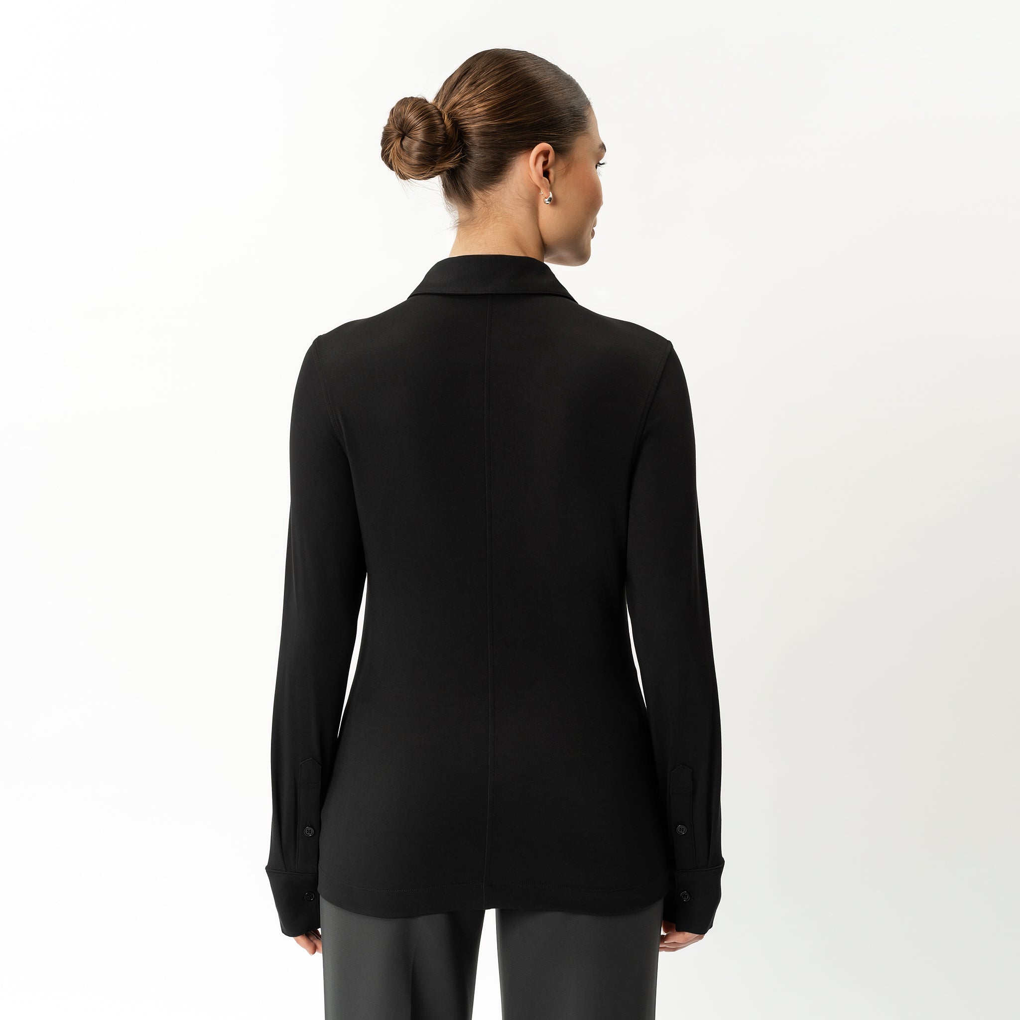 A fitted stretch button-down shirt designed with subtle shaping in all the right places. Made from soft LENZING™ Modal jersey, this shirt features front darts for a more contoured fit. Sharp enough for work, comfortable enough for all-day wear.