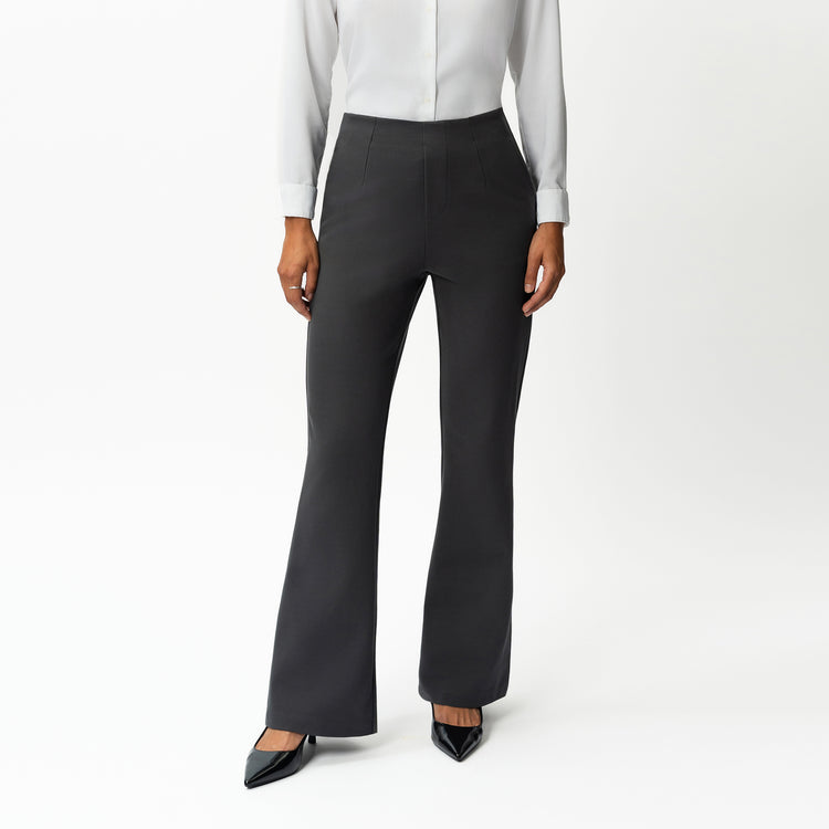 Discover the perfect blend of style and comfort with our tailor-inspired bootcut trousers. Featuring an invisible waistband and refined dart details and sleek pocketless design, these trousers are crafted from a luxurious double-knit fabric that is both heavy and soft, with a touch of stretch for all-day comfort. Ideal for any occasion, they offer a sophisticated look without compromising on ease.