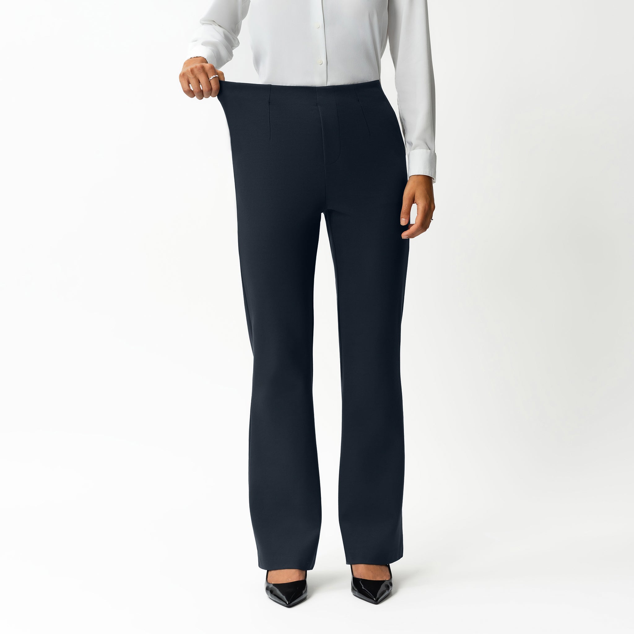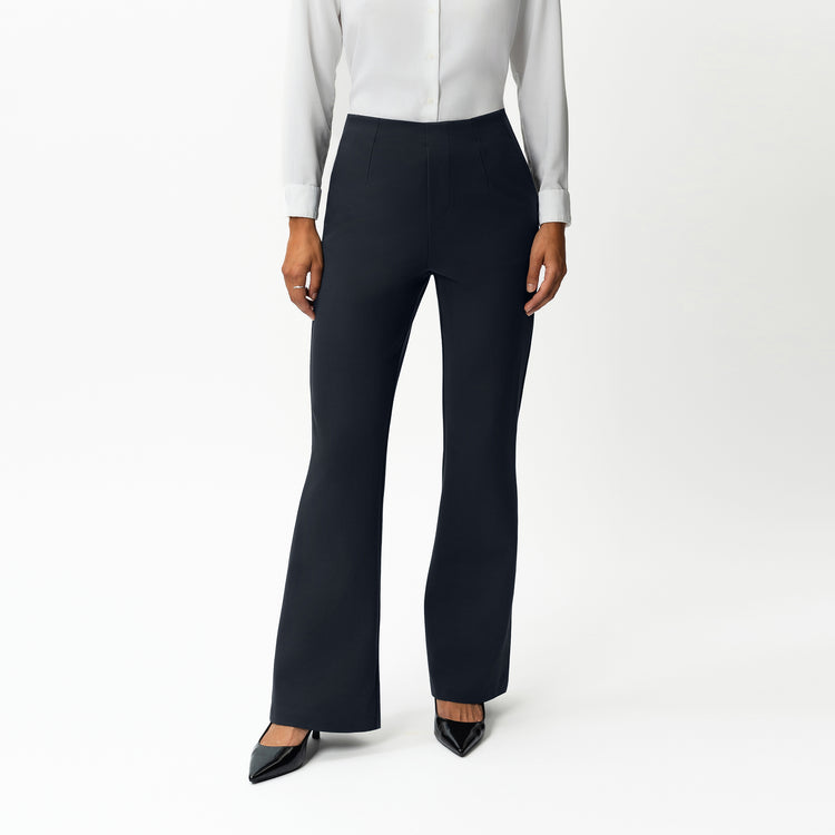 Discover the perfect blend of style and comfort with our tailor-inspired bootcut trousers. Featuring an invisible waistband and refined dart details and sleek pocketless design, these trousers are crafted from a luxurious double-knit fabric that is both heavy and soft, with a touch of stretch for all-day comfort. Ideal for any occasion, they offer a sophisticated look without compromising on ease.